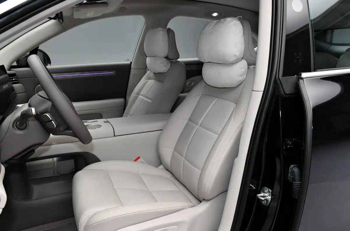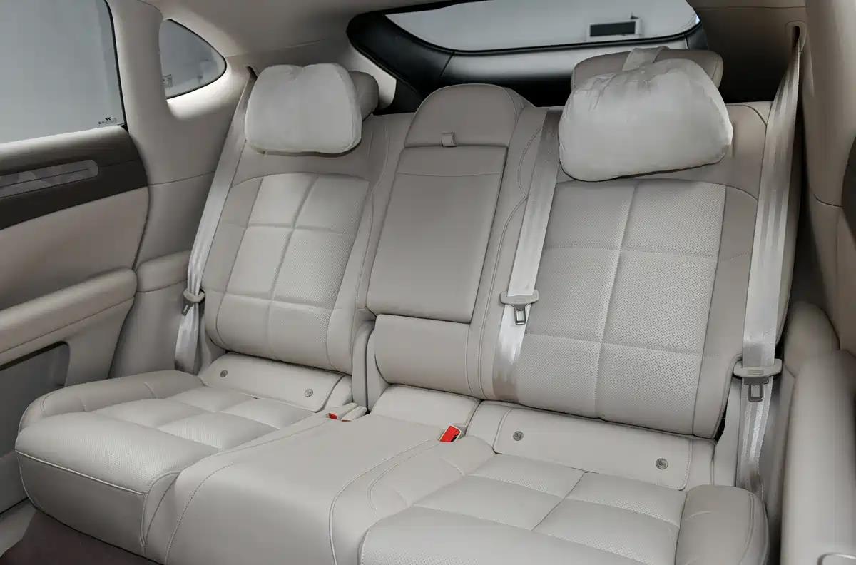 座椅看上去非常宽大,应该主打的是舒适,并且前后排都提供了软包头枕,功能方面支持通风/加热/按摩等。