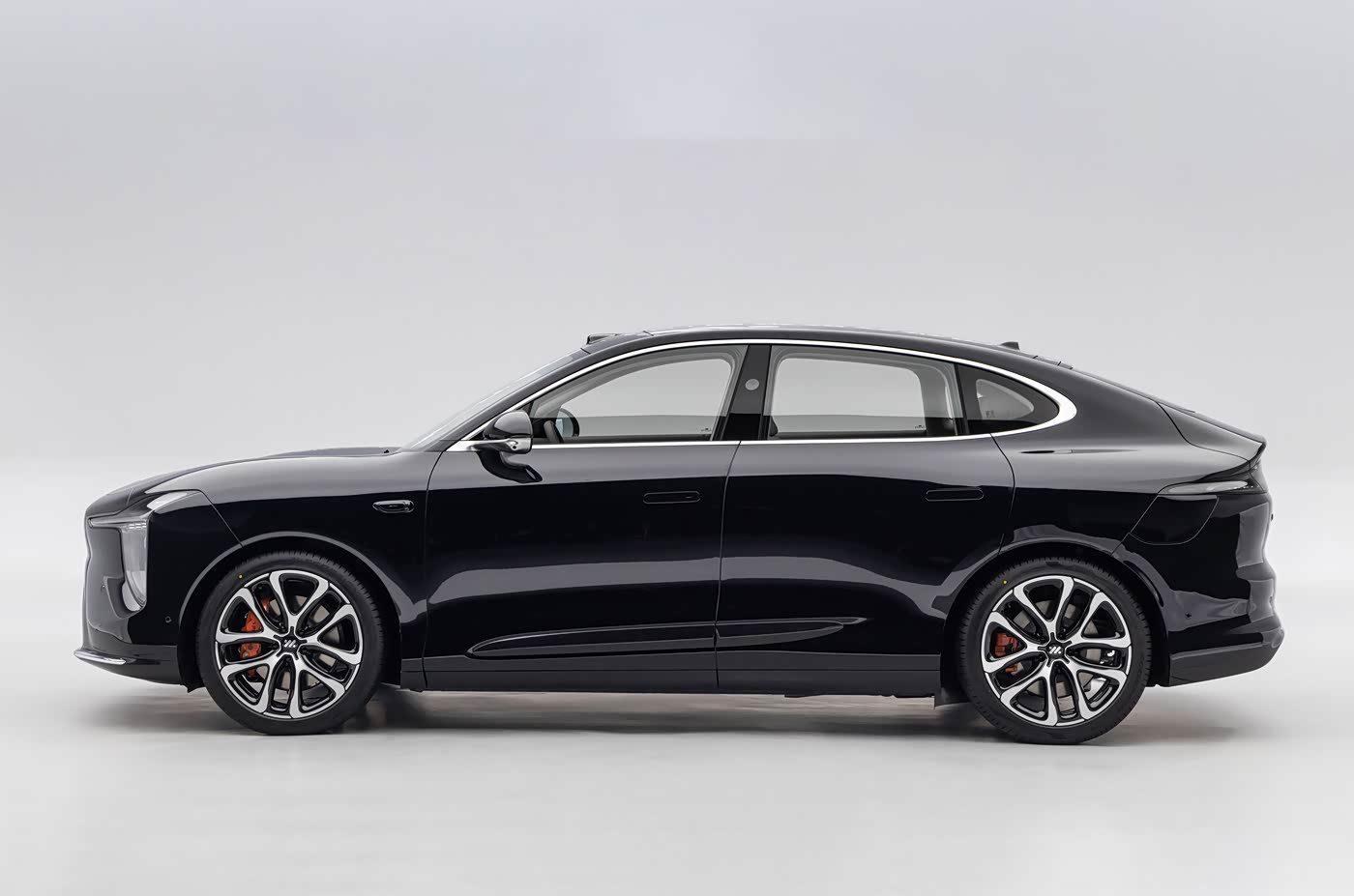 侧面的变化则小多了,新车依旧采用了溜背式的轿跑风格,整个车身线条非常流畅,看上去就很舒服。大尺寸双五辐轮圈+红色卡钳,运动感不言而喻。细节方面,隐藏式门把手自然不会缺席。尺寸方面,新车的长宽高根据动力的不同也有区别,其中增程版4937/1988/1673mm,轴距为2960mm;纯电版4937/1988/1671mm,轴距为2960mm,差距不大。