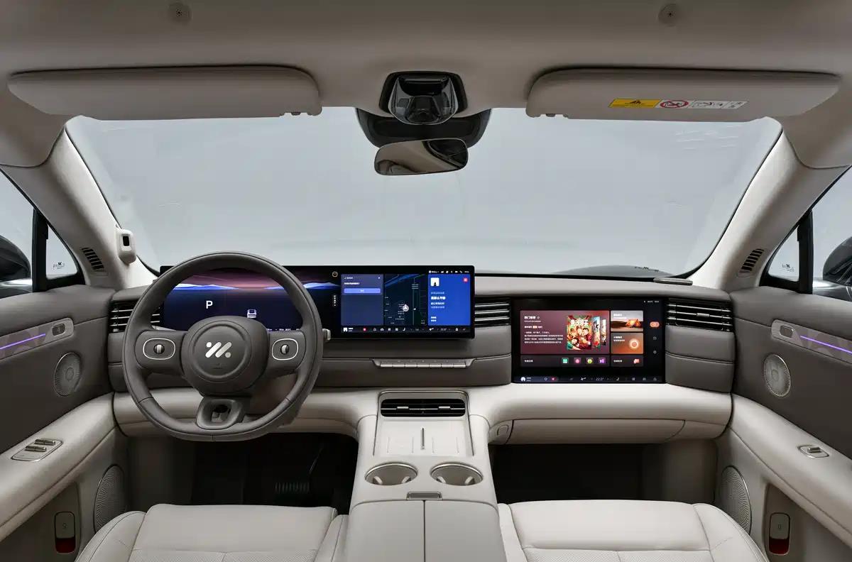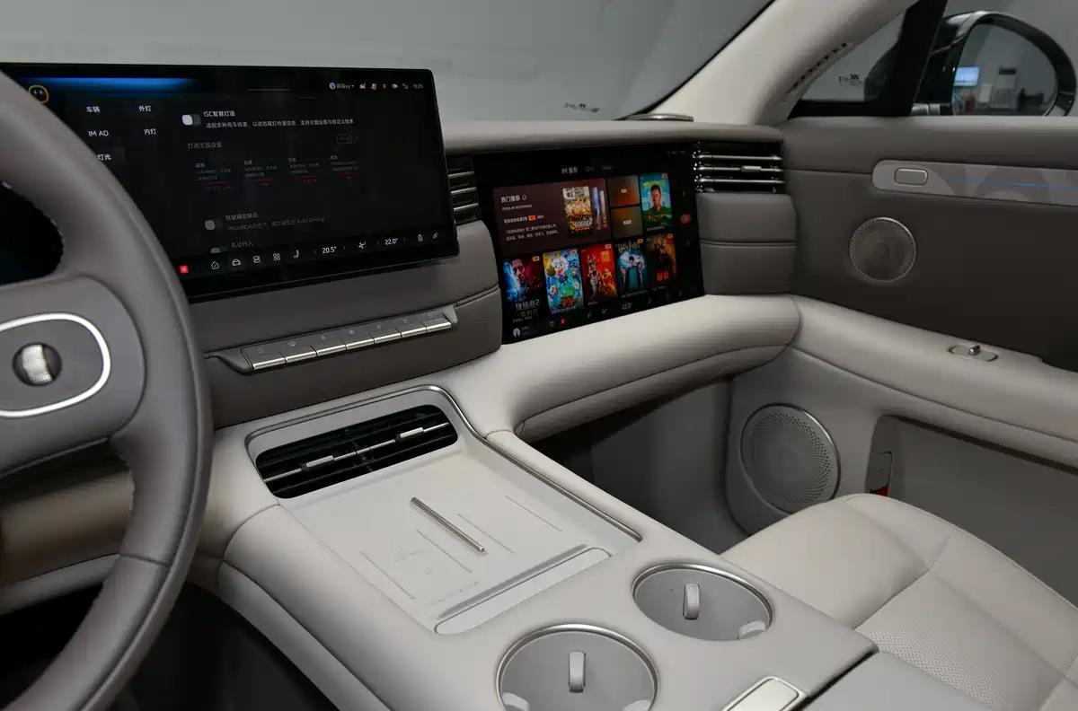 接着来看大家关心的内饰,我们也放一张现款的内饰图片,以此让大家有更直观的对比。可以看到新车将现款上的贯穿式屏幕进行了拆分,仪表和中控屏是联屏,它的分辨率达到了5K;副驾娱乐屏则是独立的设计,位于副驾前方,且嵌入到了中控台中,分辨率为3K,搭配贯穿式空调出风口,这样的设计不仅辨识度高,而且层次感也很强。